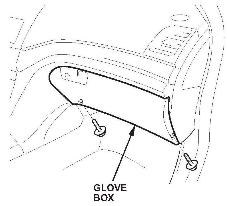 3. While holding the glove box, remove the screws, then remove the glove box.