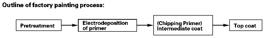 In the pretreatment process, the entire body is degreased, cleaned, and coated with zinc phosphate by dipping. After the body has been cleaned with pure water, it is placed in an electrolytic bath of soluble primer (Cationic Electro deposition).