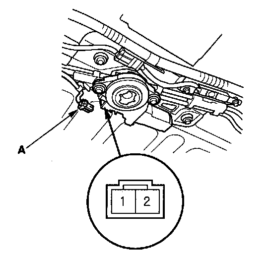 2. Disconnect the 2P connector (A) from the moonroof motor.