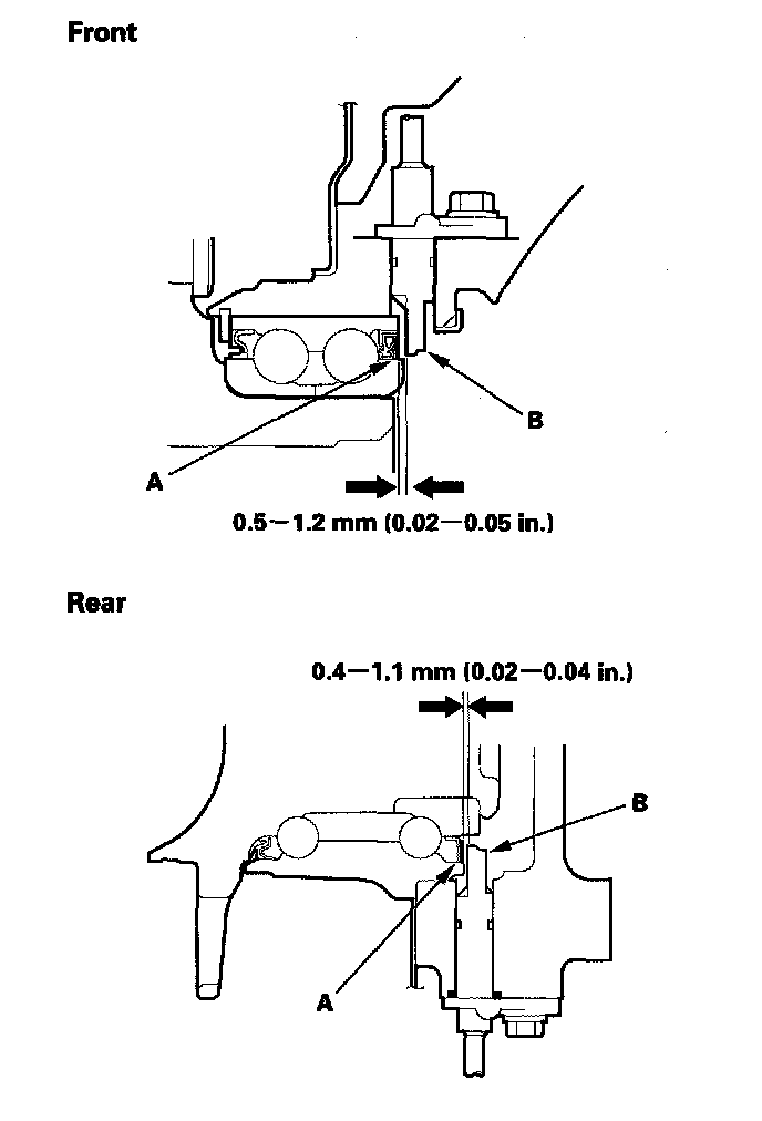 Rear: 0.4 - 1.1 mm (0.02 - 0.04 in.)