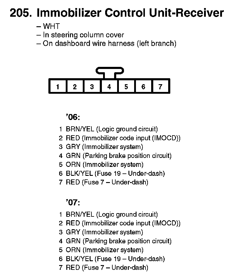 205. Immobilizer Control Unit-Receiver: