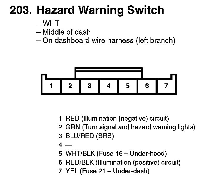 203. Hazard Warning Switch: