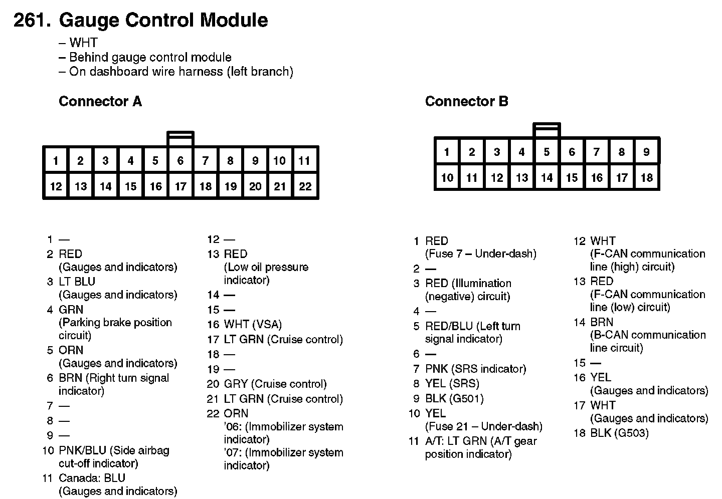 261. Gauge Control Module: