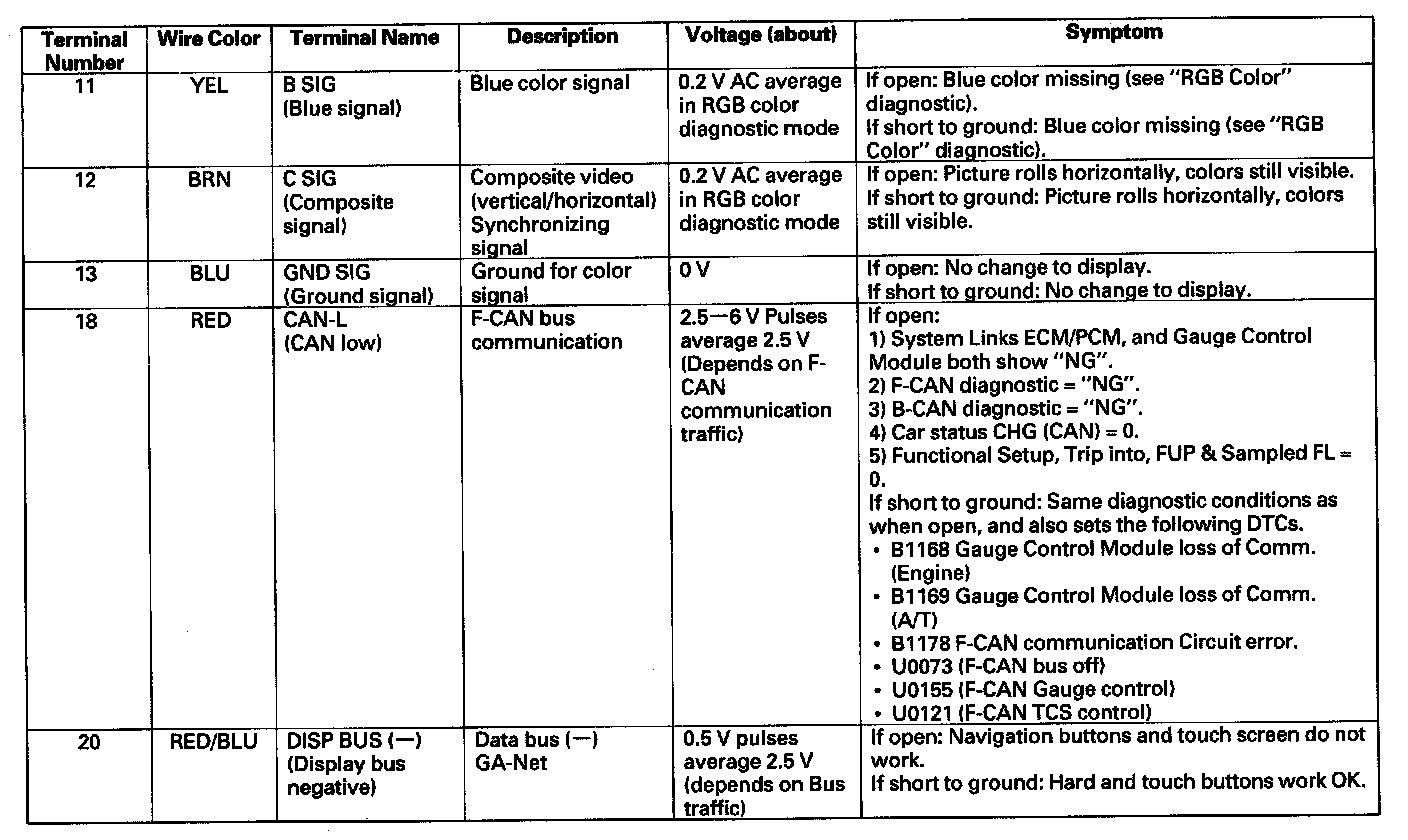 Navigation Unit Inputs And Outputs For Connector A (20P) (Part 2):