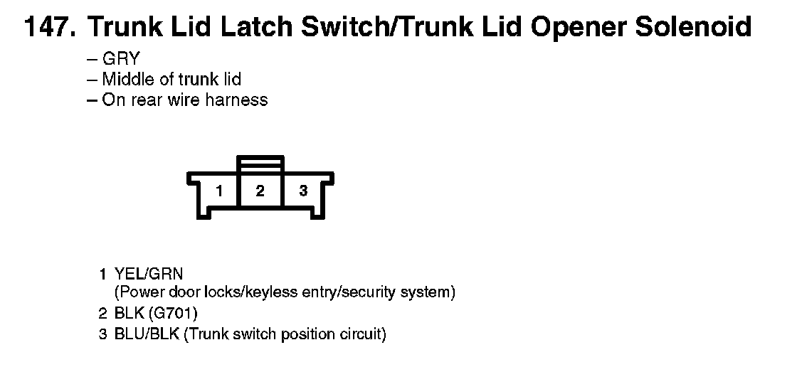 147. Trunk Lid Latch Switch/Trunk Lid Opener Solenoid: