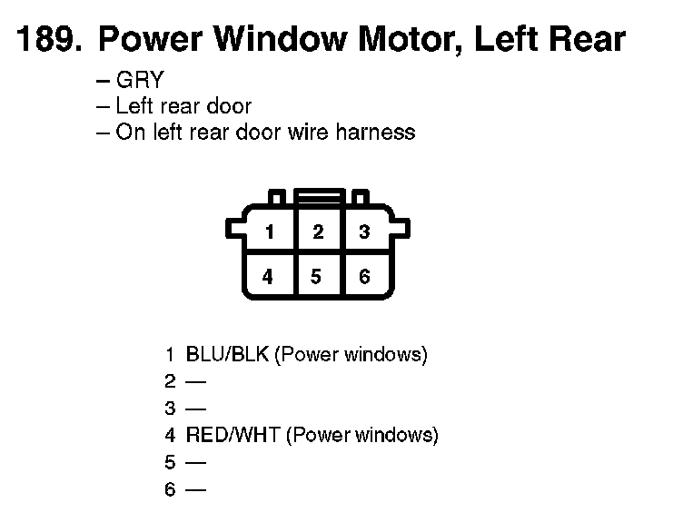 189. Power Window Motor, Left Rear: