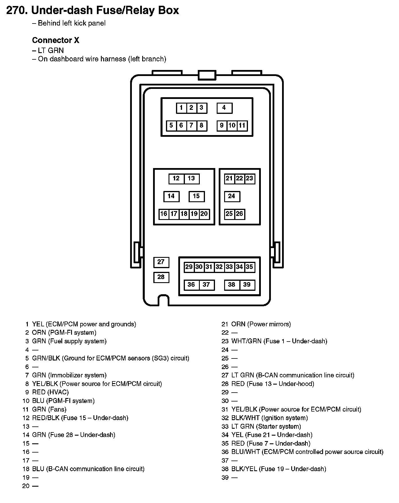 270. Under-dash Fuse/Relay Box: