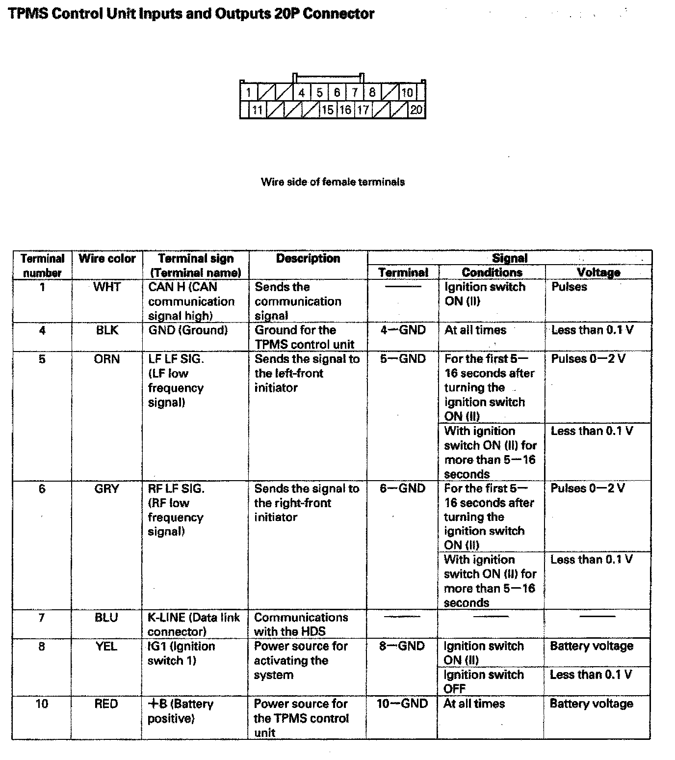 TPMS Control Unit Inputs And Outputs 20P Connector (Part 1):