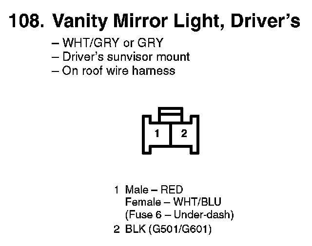 108. Vanity Mirror Light, Driver's: