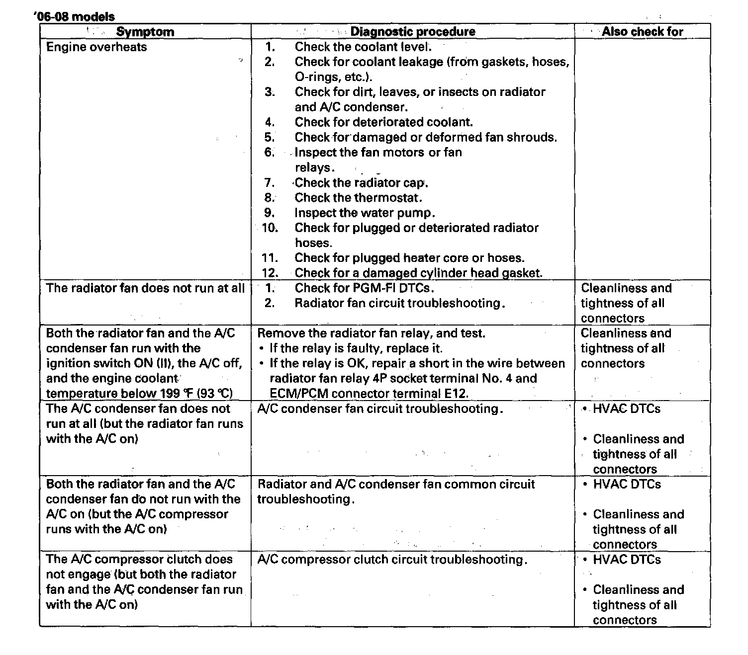 Symptom Troubleshooting Index '06-08 models: