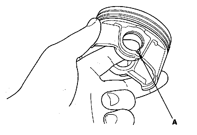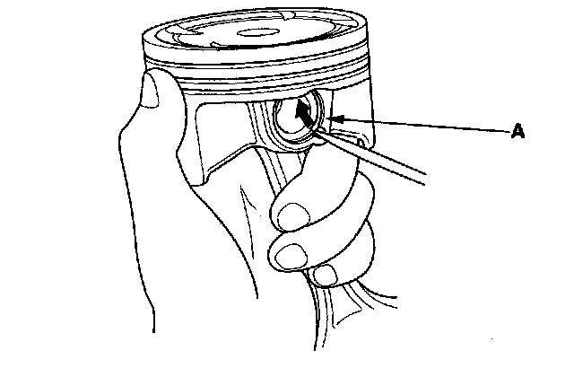 1. Install a piston pin snap ring (A) only on one side.