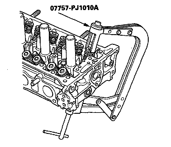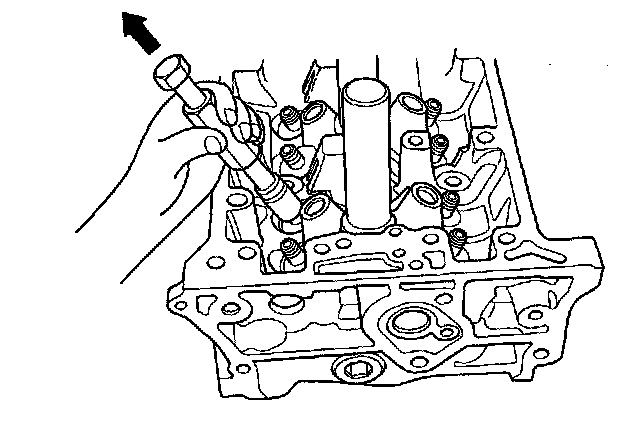 4. Remove the valve spring compressor, valve spring compressor attachment, valve spring retainer, and valve spring.
