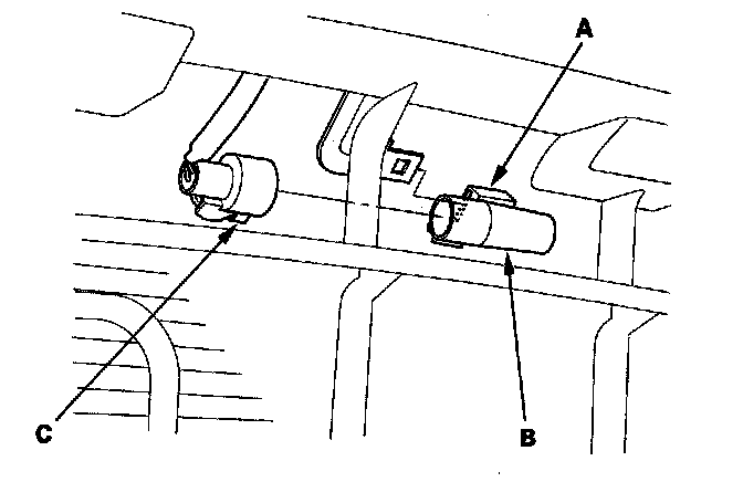 Outside Air Temperature Sensor Replacement1. Lift the tab (A) to release the lock, and remove the outside air temperature sensor (B) from the back of the front bumper beam. Disconnect 2P connector (C) from the outside air temperature sensor.
