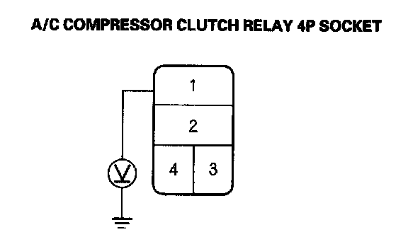 12. Measure the voltage between the No. 4 terminal of A/C compressor clutch relay 4P socket and body ground.