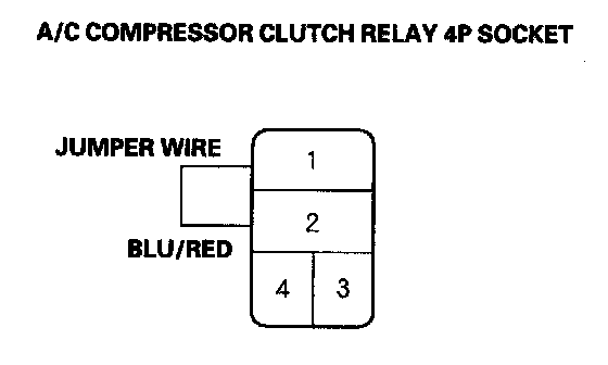 9. Connect the No. 1 and No. 2 terminals of the A/C compressor clutch relay 4P socket with a jumper wire.