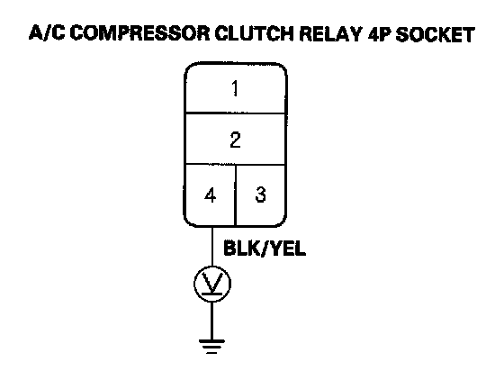 8. Measure the voltage between the No. 1 terminal of A/C compressor clutch relay 4P socket and body ground.