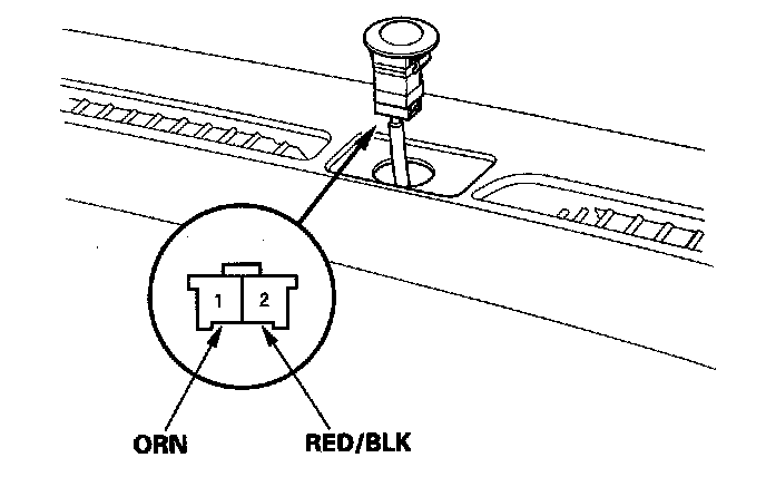 2. Turn the ignition switch ON (II). Measure the voltage between the terminals with the (+) probe on the No. 1 terminal and the (-) probe on the No. 2 terminal with the 2P connector connected. The voltage readings will not change under the light of a flashlight or a fluorescent lamp. Voltage should be: