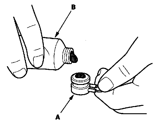 2. Replace the thermal protector (A) with a new one, and apply silicone sealant (B) to the bottom of the thermal protector.