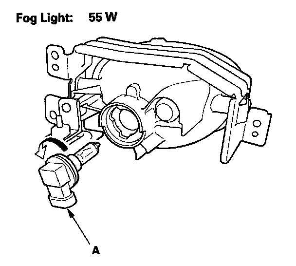 5. Turn the bulb socket (A) 45° counterclockwise to remove it from the housing.