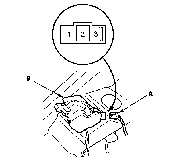 2. Disconnect the 3P connector (A) from the trunk lid latch (B).