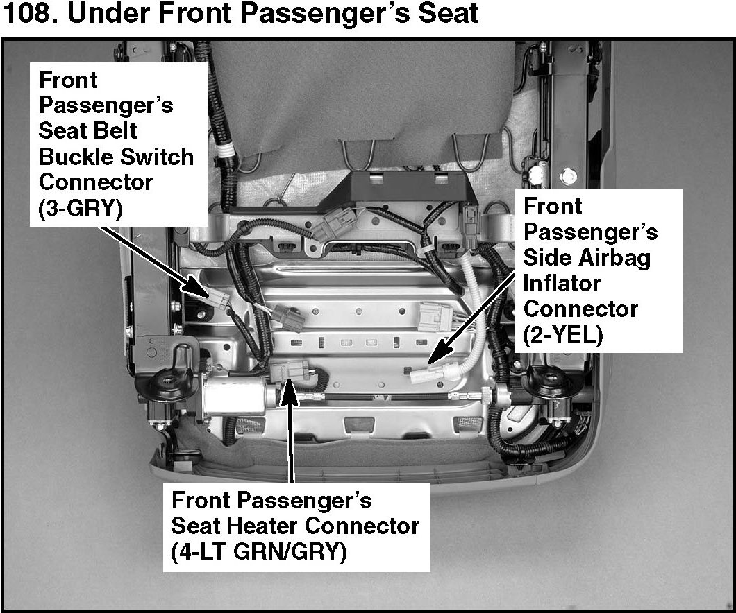 108. Under Front Passenger's Seat: