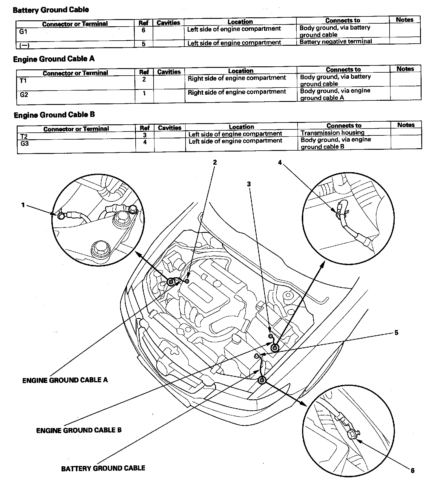 Battery Ground Cable/Engine Ground Cable A/Engine Ground Cable B: