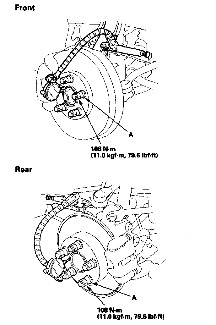 3. Install suitable flat washers (A) and the wheel nuts, and torque to the specified torque.