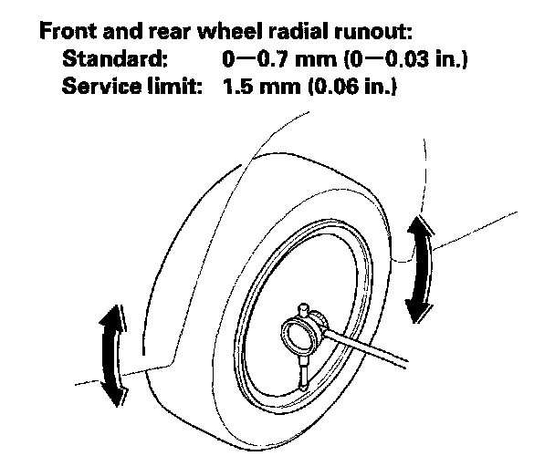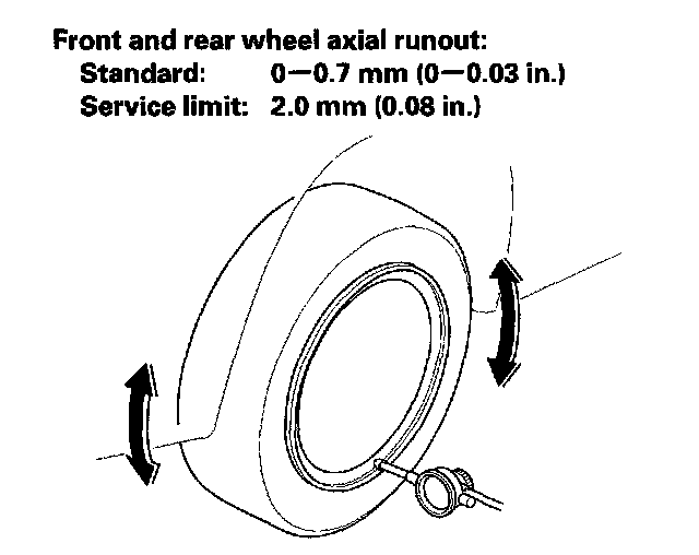 6. If the bearing end play is within the specification but the wheel runout is more than the service limit, replace the wheel.