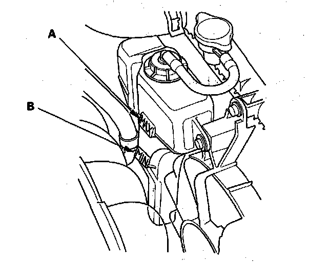 Coolant Check1. Look at the coolant level in the coolant reservoir. Make sure it is between the MAX mark (A) and MIN mark (B).