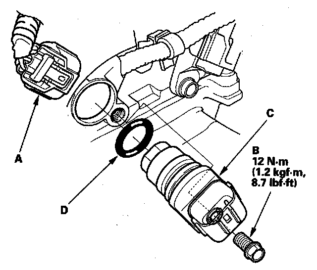 5. Install the parts in the reverse order of removal with a new O-ring (D).