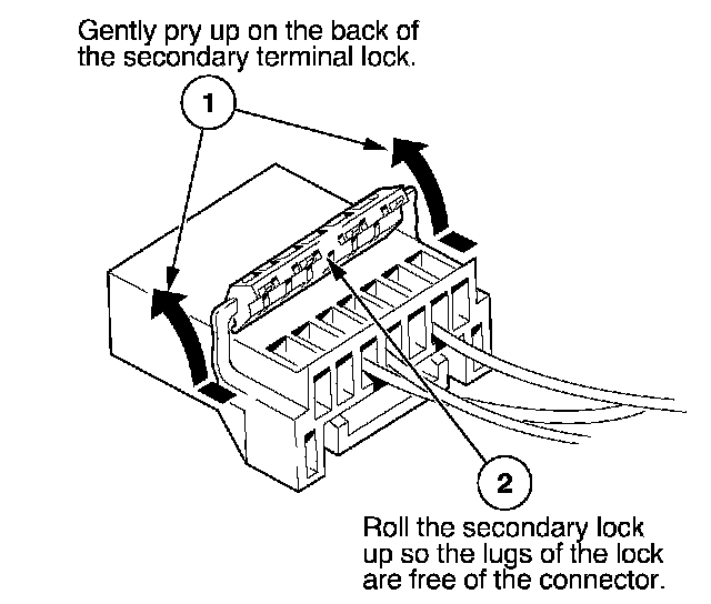 - If it has a secondary terminal lock, go to Connectors With a Secondary Lock. A secondary lock, found on most connectors on some models, is an additional locking device on the connector housing as a backup for the primary lock on the terminal.