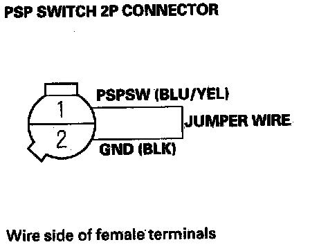 19. Remove the jumper wire from the PSP switch 2P connector.