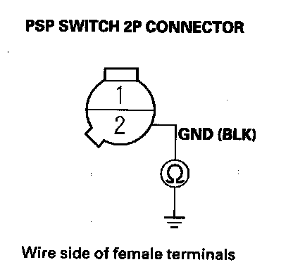 13. Check for continuity between PSP switch 2P connector terminal No. 1 and body ground.