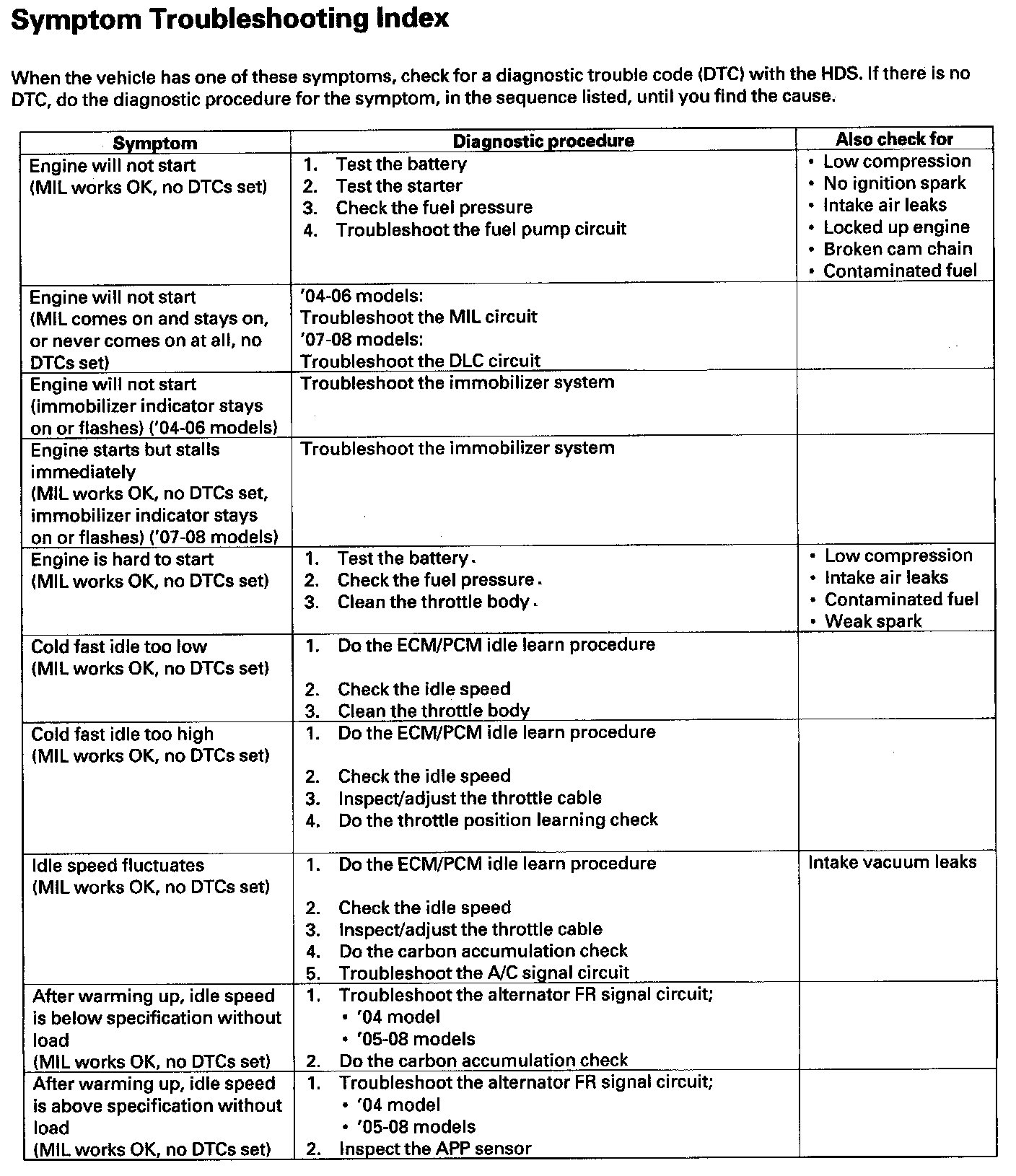 Symptom Troubleshooting Index Part 2: