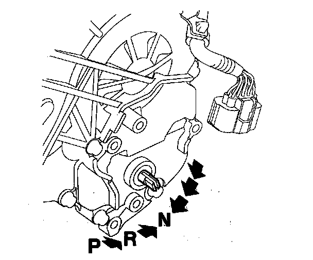 6. Make sure the selector control shaft is in the N position. If necessary, move the shift lever from P to N.
