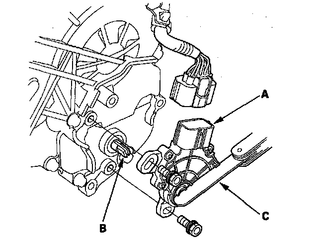 8. Install the transmission range switch (A) gently on the selector control shaft (B) while holding it in the N position with the 2.0 mm (0.08 in.) blade (C).