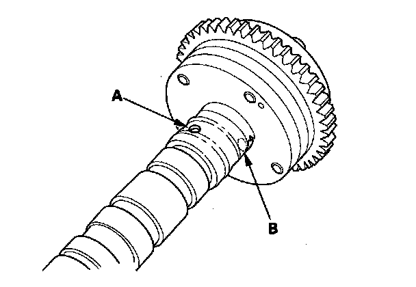 6. Seal the advance holes (A) and retard holes (B) in the No. 1 camshaft journal with tape.