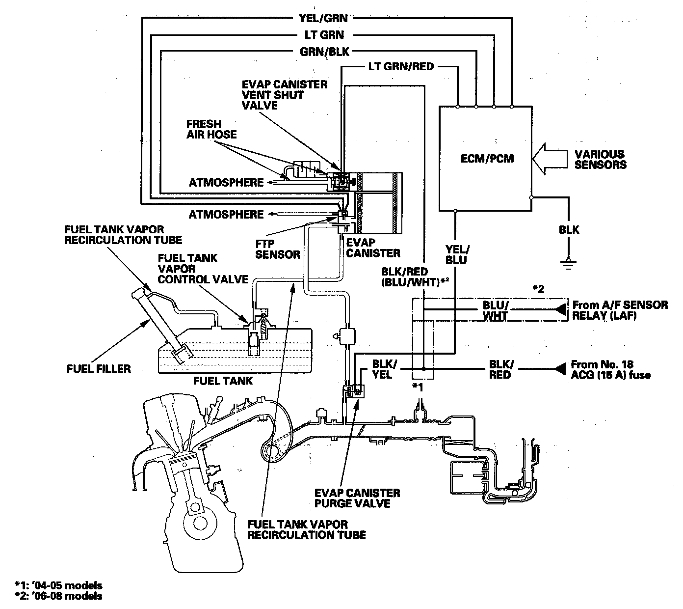 The EVAP controls minimize the amount of fuel vapor escaping to the atmosphere. Vapor from the fuel tank is temporarily stored in the EVAP canister until it can be purged from the canister into the engine and burned.
