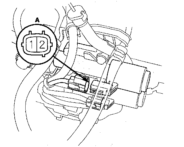 14. Connect the battery positive terminal to A/T clutch pressure control solenoid valve C connector terminal No. 1, and connect the battery negative terminal to the No. 2 terminal. Make sure clutch pressure control solenoid valve C moves.
