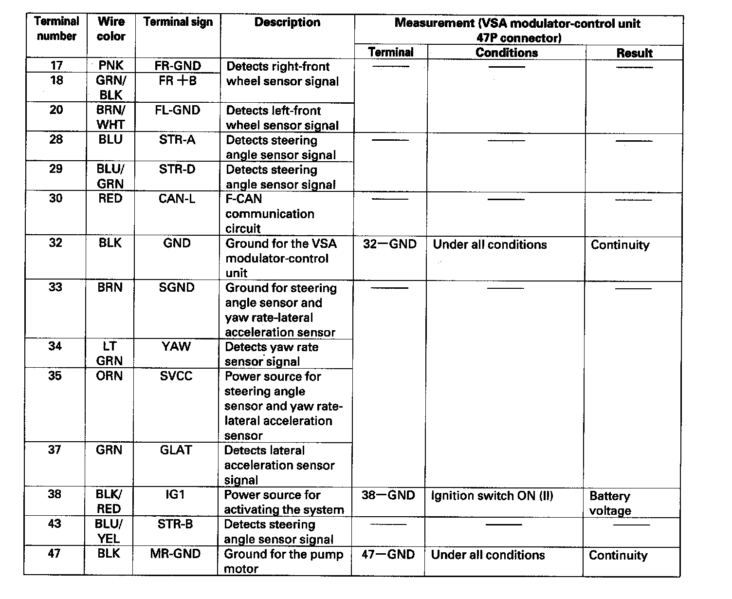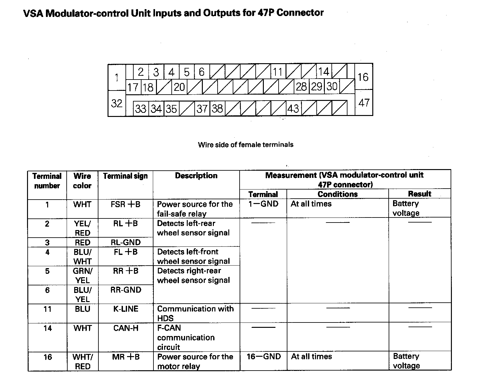 VSA Modulator-control Unit Inputs and Outputs for 47P Connector (Part 2):