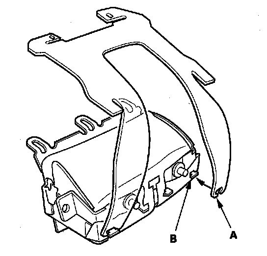3. Wrap the airbag protector over the airbag, and slide the slots (A) of the protector around the tabs on the airbag frame. Align the two pins (B) on the airbag frame into the two holes in the airbag protector.