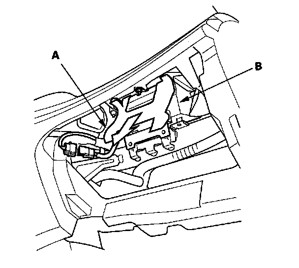 7. Remove the lower hooks of the airbag protector (A) from the front passenger's airbag (B), and pull out the protector.
