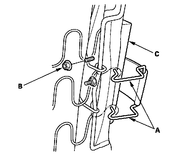 NOTE: If you are replacing a deployed airbag, replace the reinforcing cloth rear hooks (A).