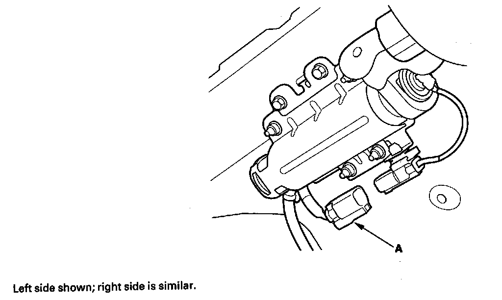 4. Disconnect the side curtain airbag harness 2P connector (A) from the side curtain airbag.