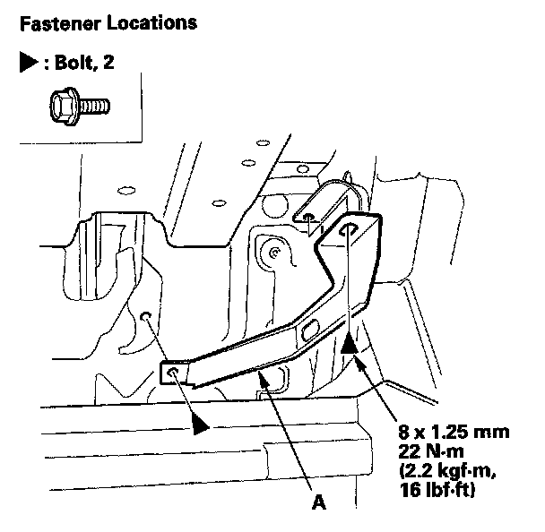 12. Remove bolts, then remove the brake pedal support member (A).