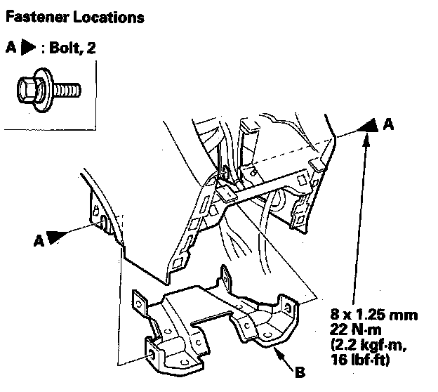 16. Remove the bolts (A), then remove the center bracket (B).