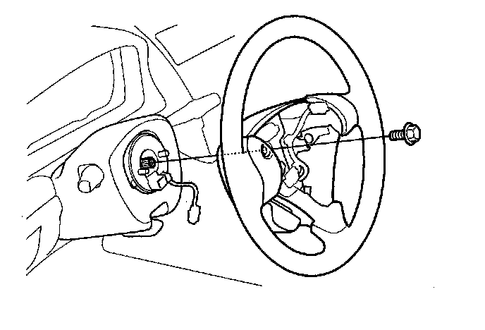 7. Remove the steering wheel puller, then remove the steering wheel bolt and steering wheel from the steering column.