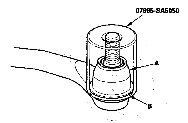 6. Install the new tie-rod ball joint boot (A) using the front hub dis/assembly tool. The boot must not have a gap at the boot installation sections (B). After installing the boot, check the ball pin tapered section for grease contamination, and-wipe it if necessary.