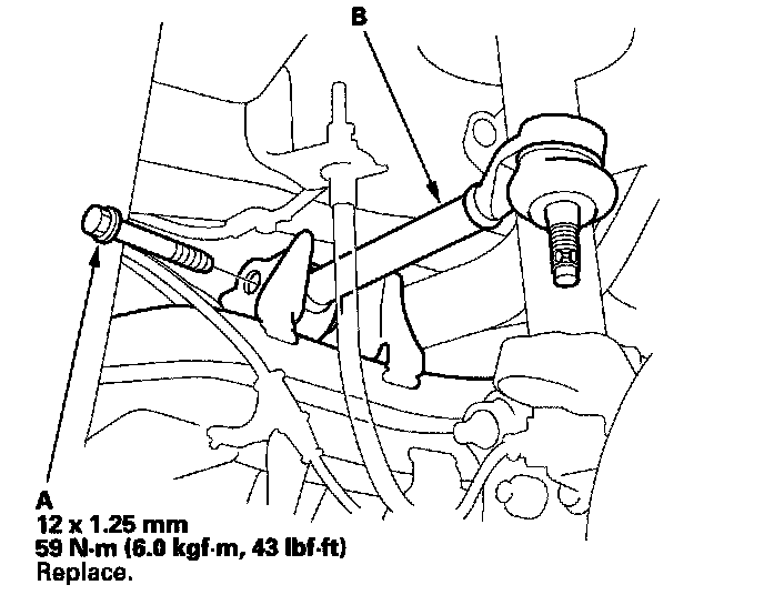 7. Remove the mounting bolt (A), and remove the upper arm (B).