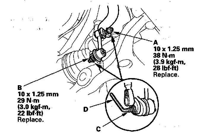NOTE: The left stabilizer link has a yellow paint mark (D), while the right stabilizer link has a white paint mark,